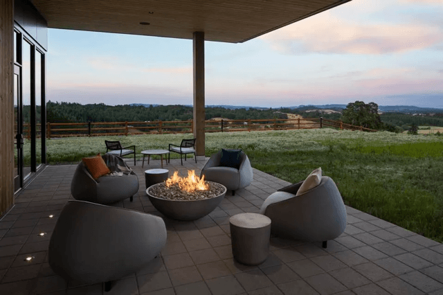 A private Newberg estate with sweeping vineyard views, Tempur-Pedic suites, hot tub, sauna, cold plunge, and dual gourmet kitchens — one of the most coveted rentals in the valley.