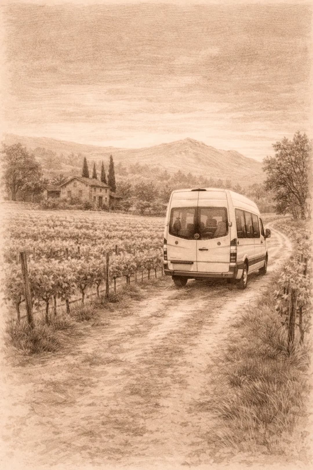 We've gone all out on our fun wine country ride. Relax and journey through the Valley in our custom-built XL Sprinter Van — swivel seats, water, snacks and great music onboard.